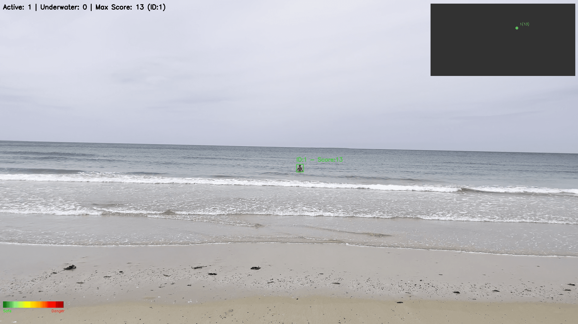 This tracking system determines precisely when a person disappears beneath the surface, and for how long. Each individual is assigned a danger score that evolves dynamically based on distance from shore, immersion time, and frequency of disappearance.